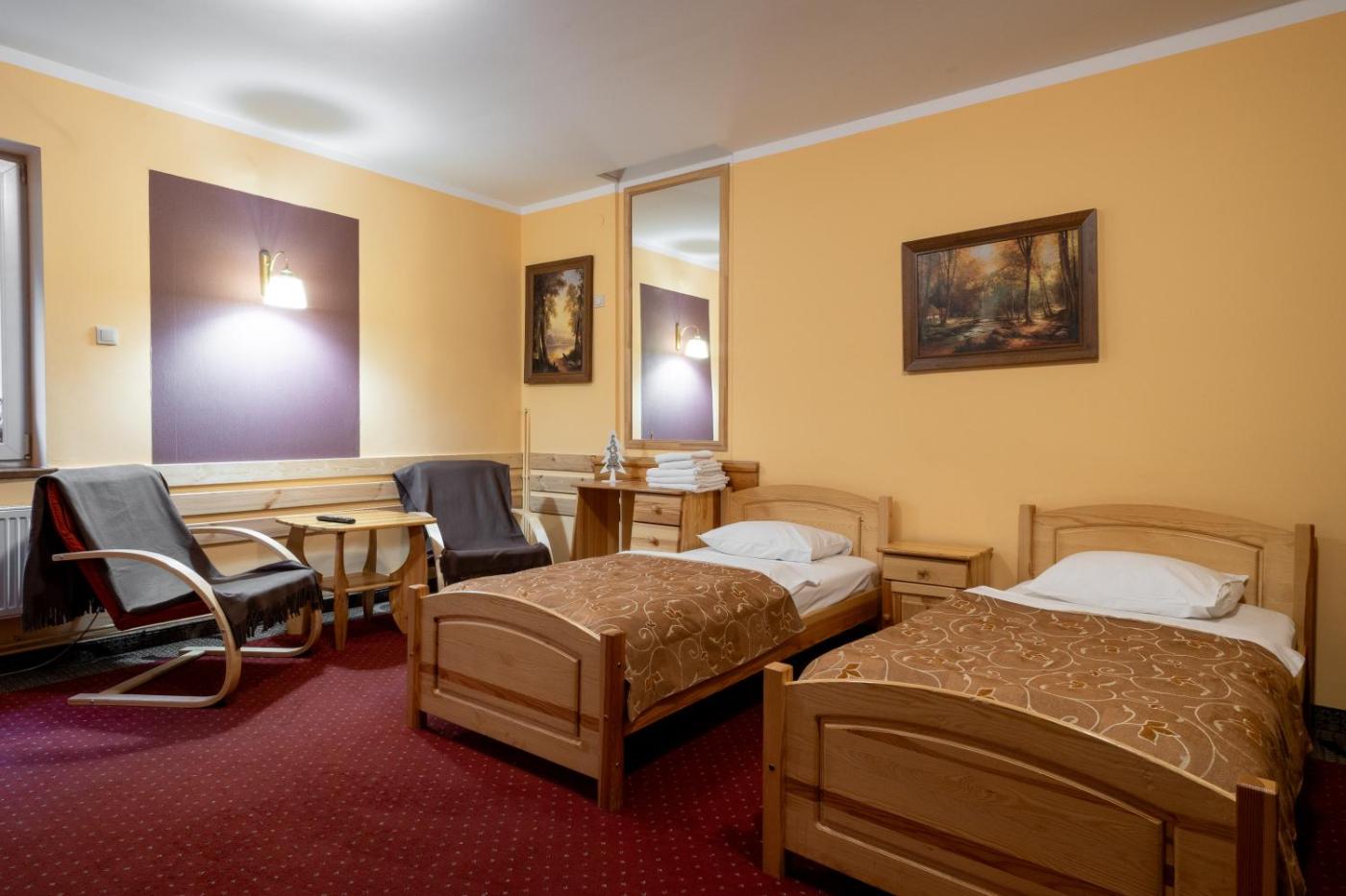 Pokój Czteroosobowy. Ten klasycznie urządzony pokój utrzymany jest w stonowanych kolorach. Pokój Czteroosobowy - 4 osobowy. Powierzchnia pokoju ok.: 20 mkw. ;