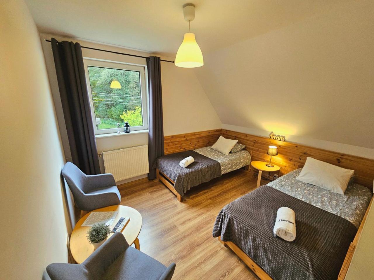 Pokój Czteroosobowy. The quadruple room offers executive lounge access and a wardrobe, as well as a private bathroom boasting a walk-in shower. This quadruple room has a barbecue, heating, a flat-screen TV and garden views. The unit has 4 beds. Pokój Czteroosobowy - 4 osobowy. Powierzchnia pokoju ok.: 16 mkw. ;